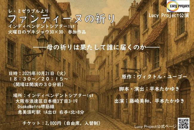 「ファンテーヌの祈り」公演を終えて 投稿者: levelbook123 2025年10月22日 1分 4日 名作「レ・ミゼラブル」を元にしたこちらの作品、 「ファンティーヌの祈り」公演は、無事盛況の […] 4.過去の公演